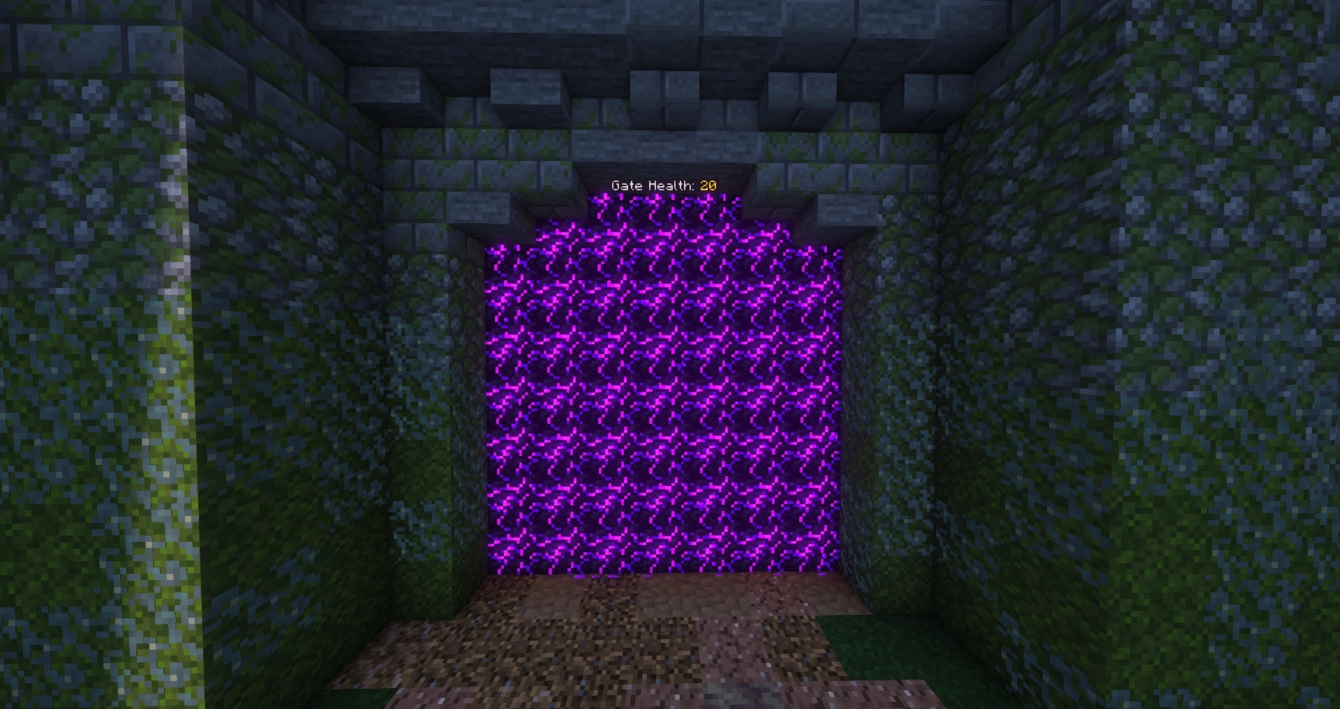De poorten hebben allemaal een health indicator die start op 20 health. Elke keer als er een blok uit de poort gehakt wordt zal er 1 health af gaan. Dit doe je best met een diamond of netherite pickaxe.