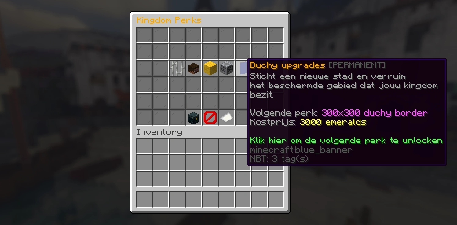 De leider van een kingdom kan perks unlocken via het perks menu. Dit menu is te openen met het /k perks
